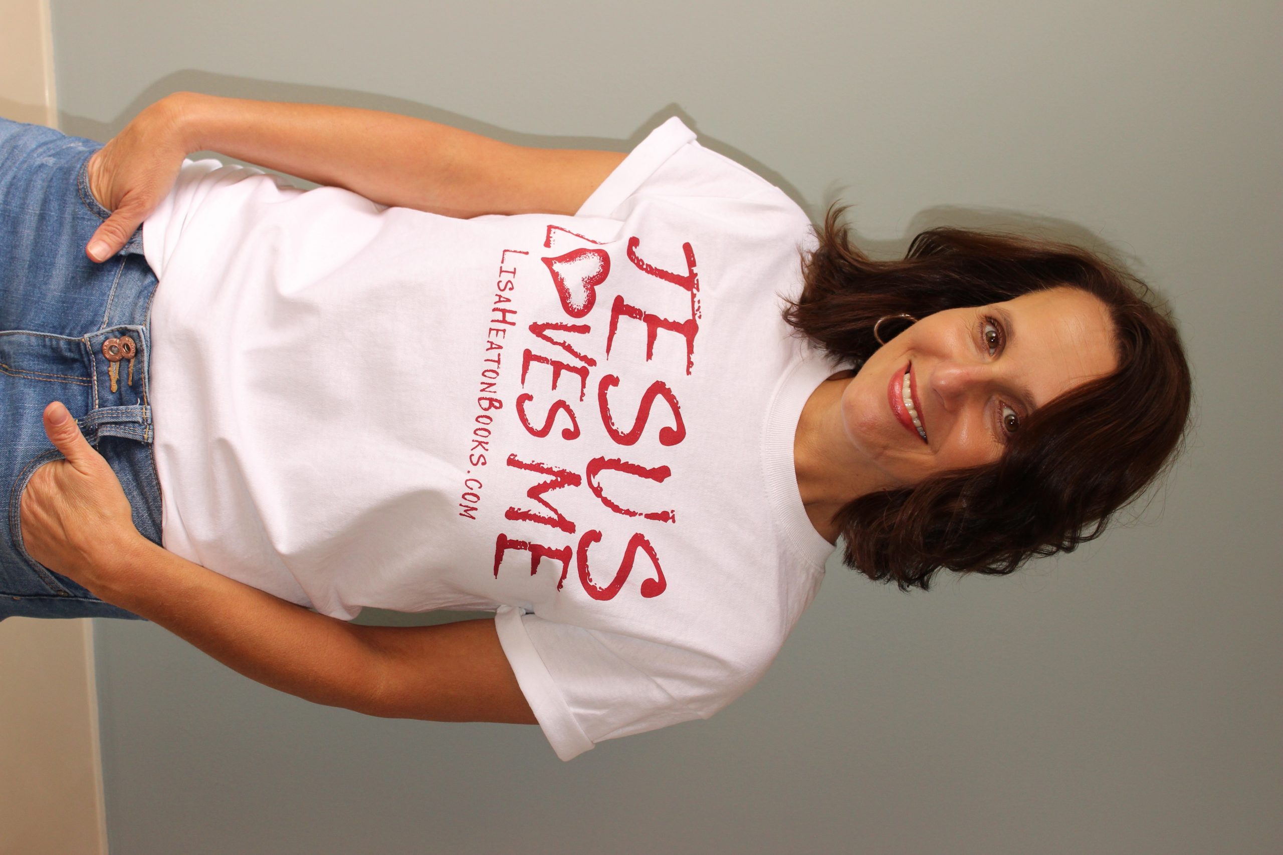 Red print Jesus Love Me with LisaHeatonBooks.com web address.